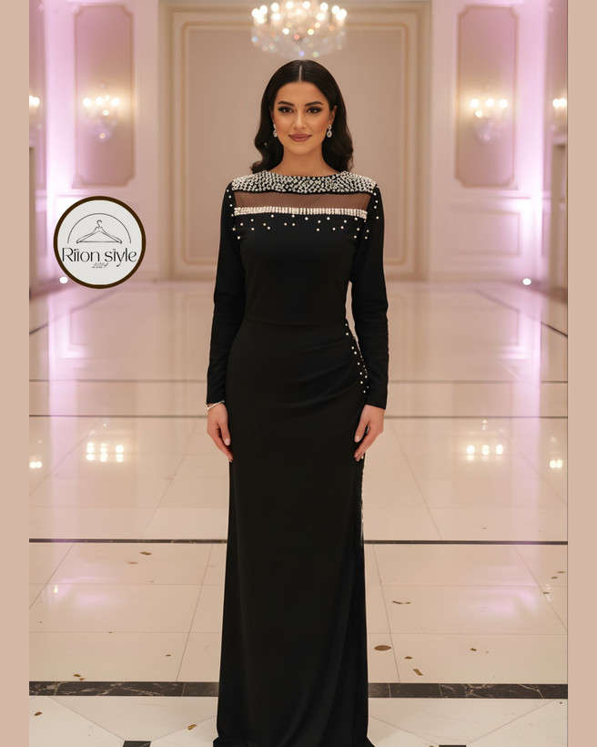 پیراهن بلند مجلسی پوشیده مرواریدی