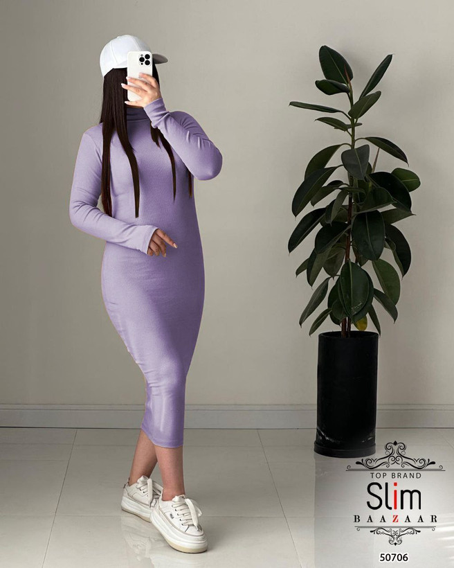 پیراهن بلند ساده یقه اسکی، فینگردار