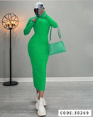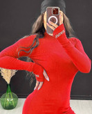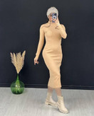 پیراهن بلند ماکسی یقه اسکی، فینگردار گلدوزی شده