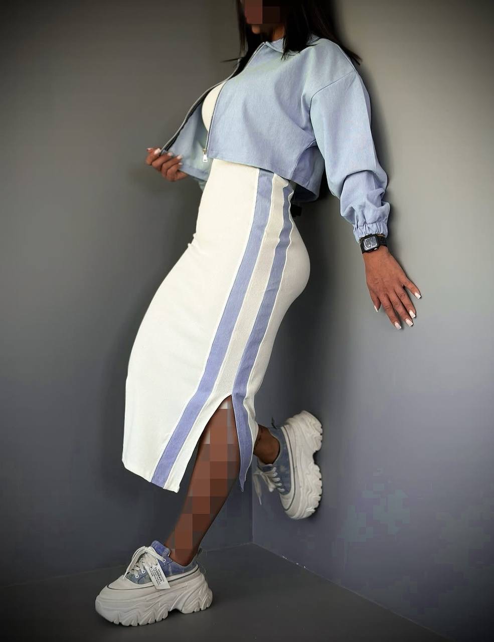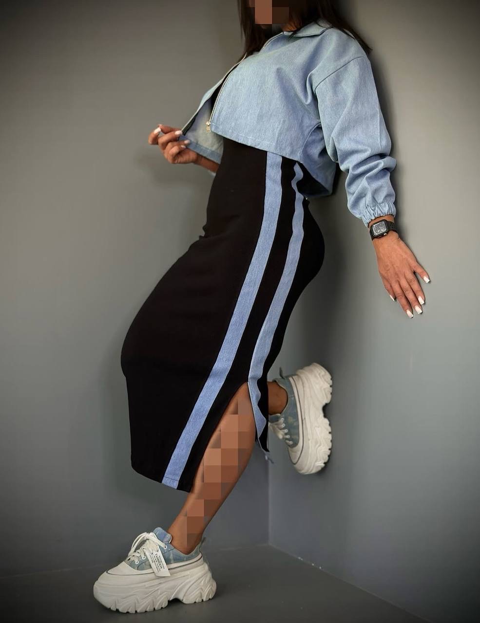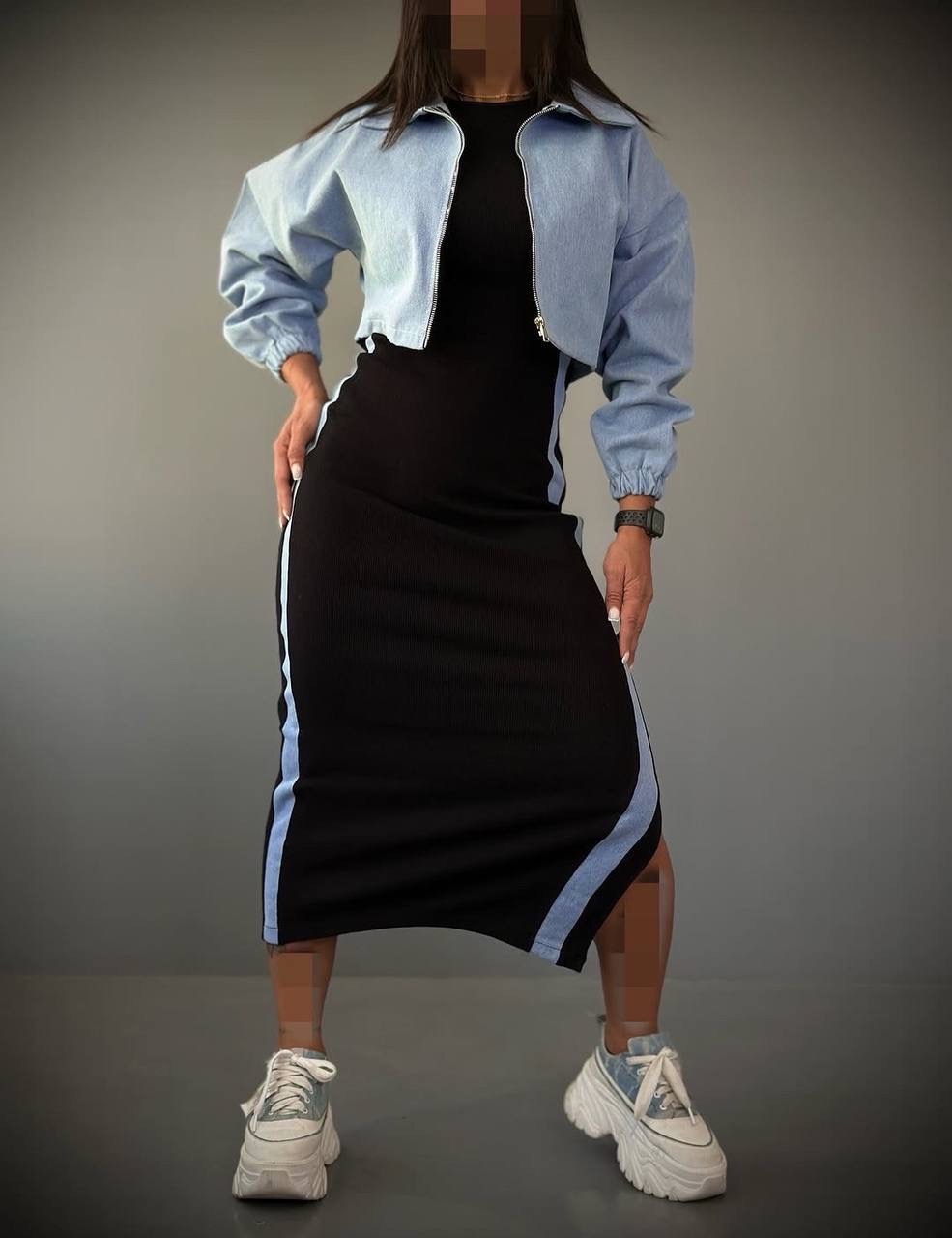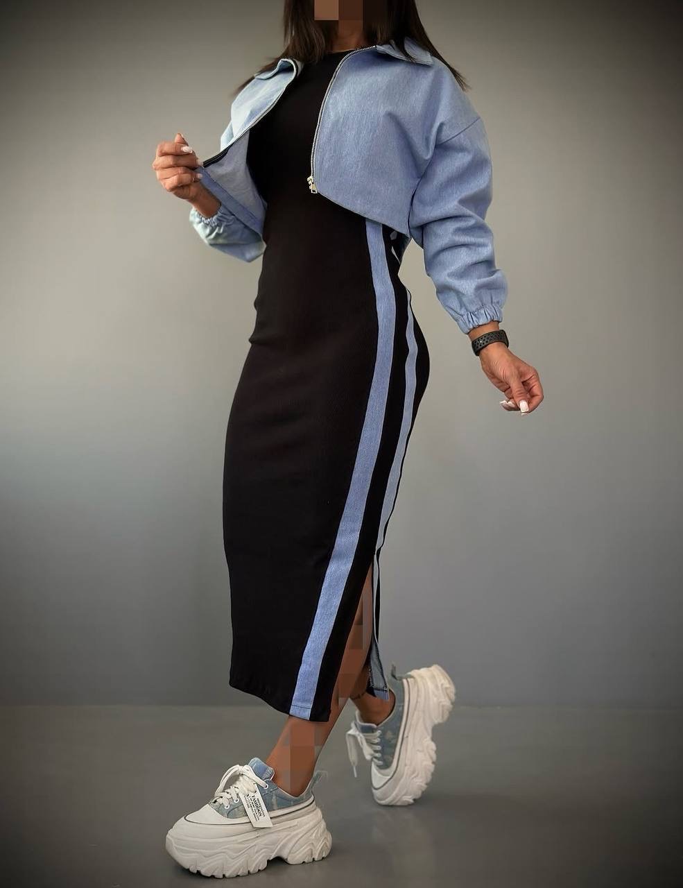 ست دوتیکه سارافون و کت جین زنانه