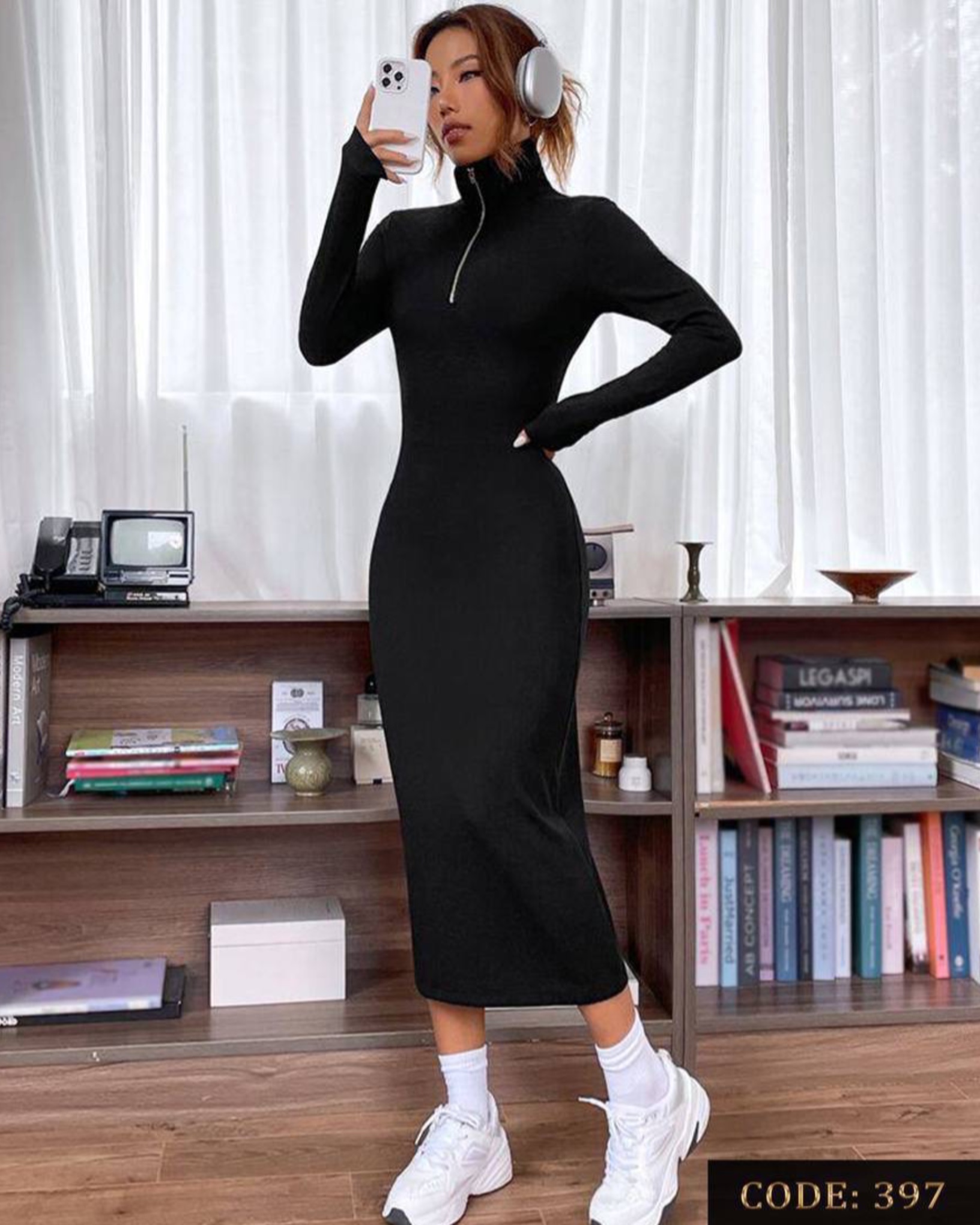 پیراهن بلند جلو زیپدار، فینگردار،مشکی